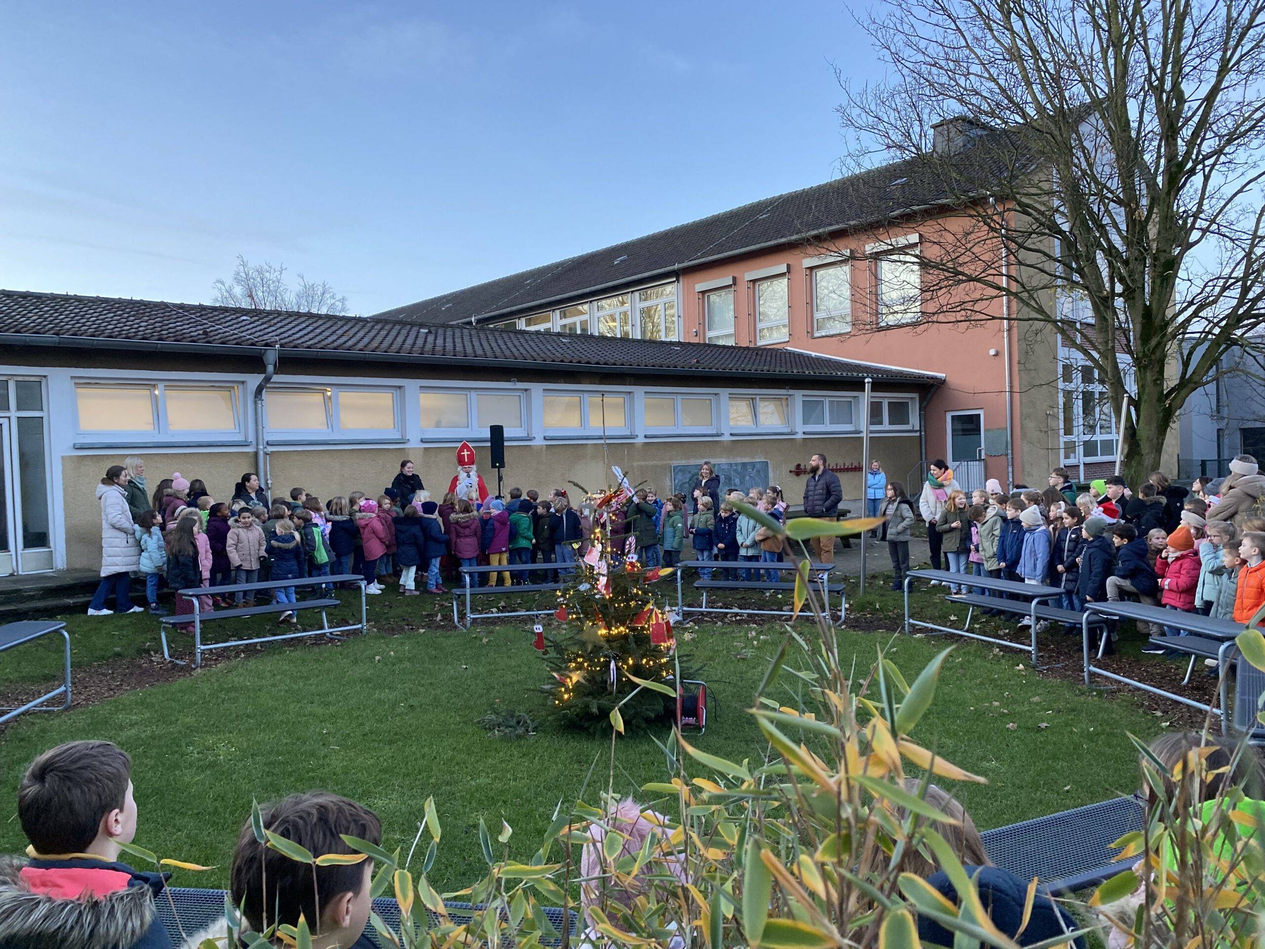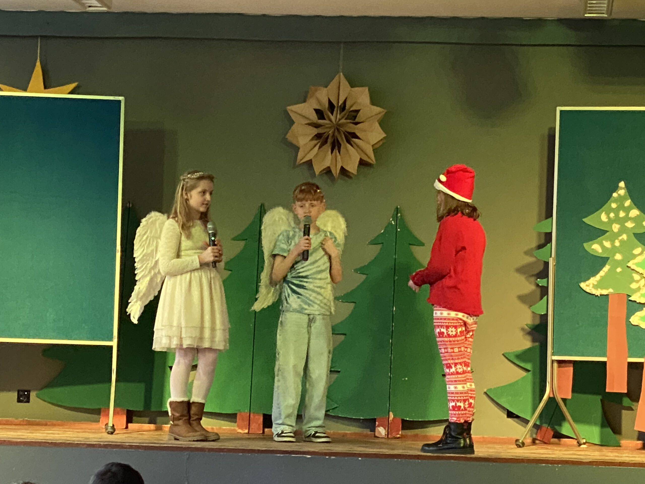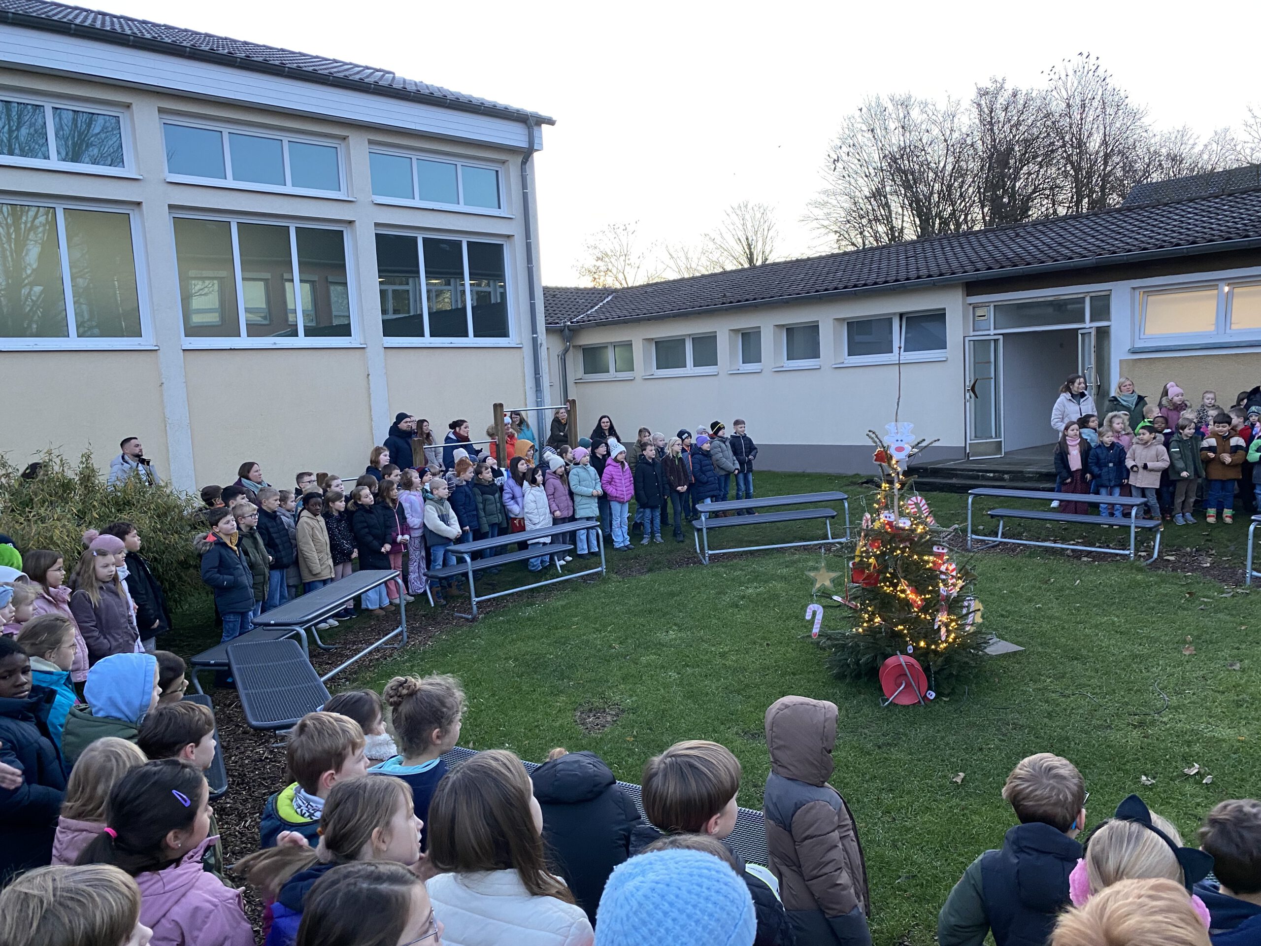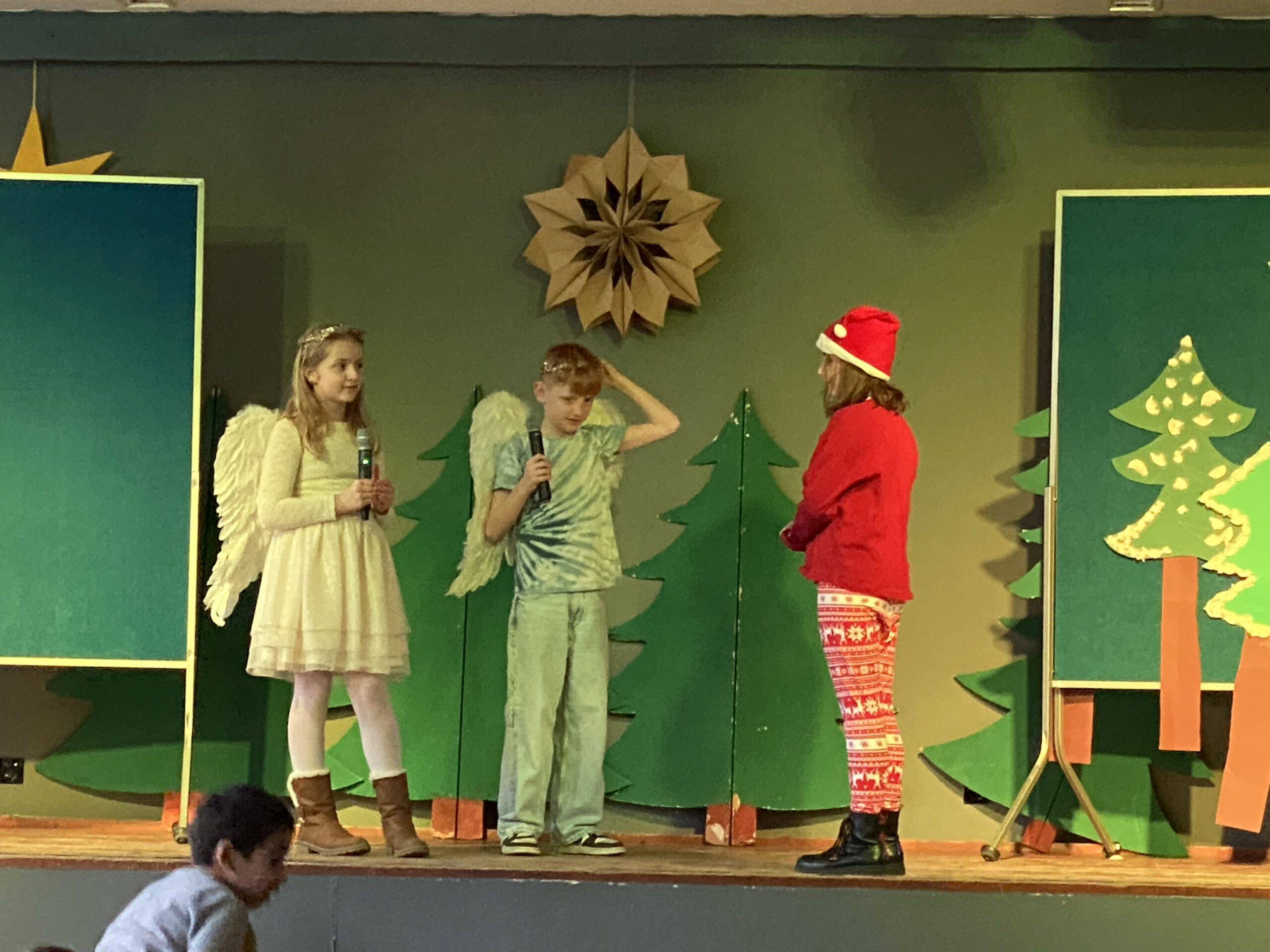Am Freitag vor den Ferien gaben dann noch einmal die vierten Klassen einige Lieder zu Besten und die schuleigene Theater-AG führte unter der Leitung von Fr. Rüter und Fr. Utke ein modernes Weihnachtsstück auf. Zum Abschluss sangen alle Kinder und Erwachsenen das Lied „Alle Jahre wieder“ – ein absoluter Gänsehautmoment!!!